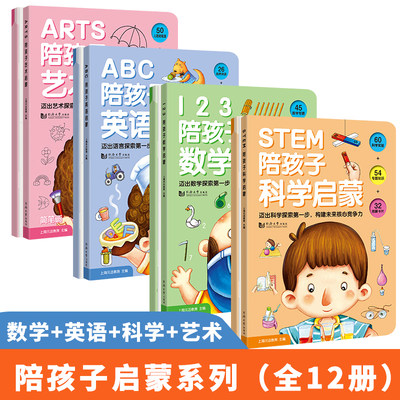 陪孩子启蒙套装stem科学arts艺术123数学abc英语全套12册幼儿园大中小班宝宝益智力逻辑游戏4 6 8周岁小学生专注力训练书 虎窝淘